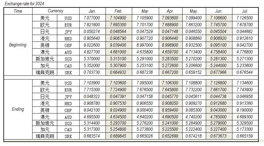 外匯匯率| 7月記賬匯率參考